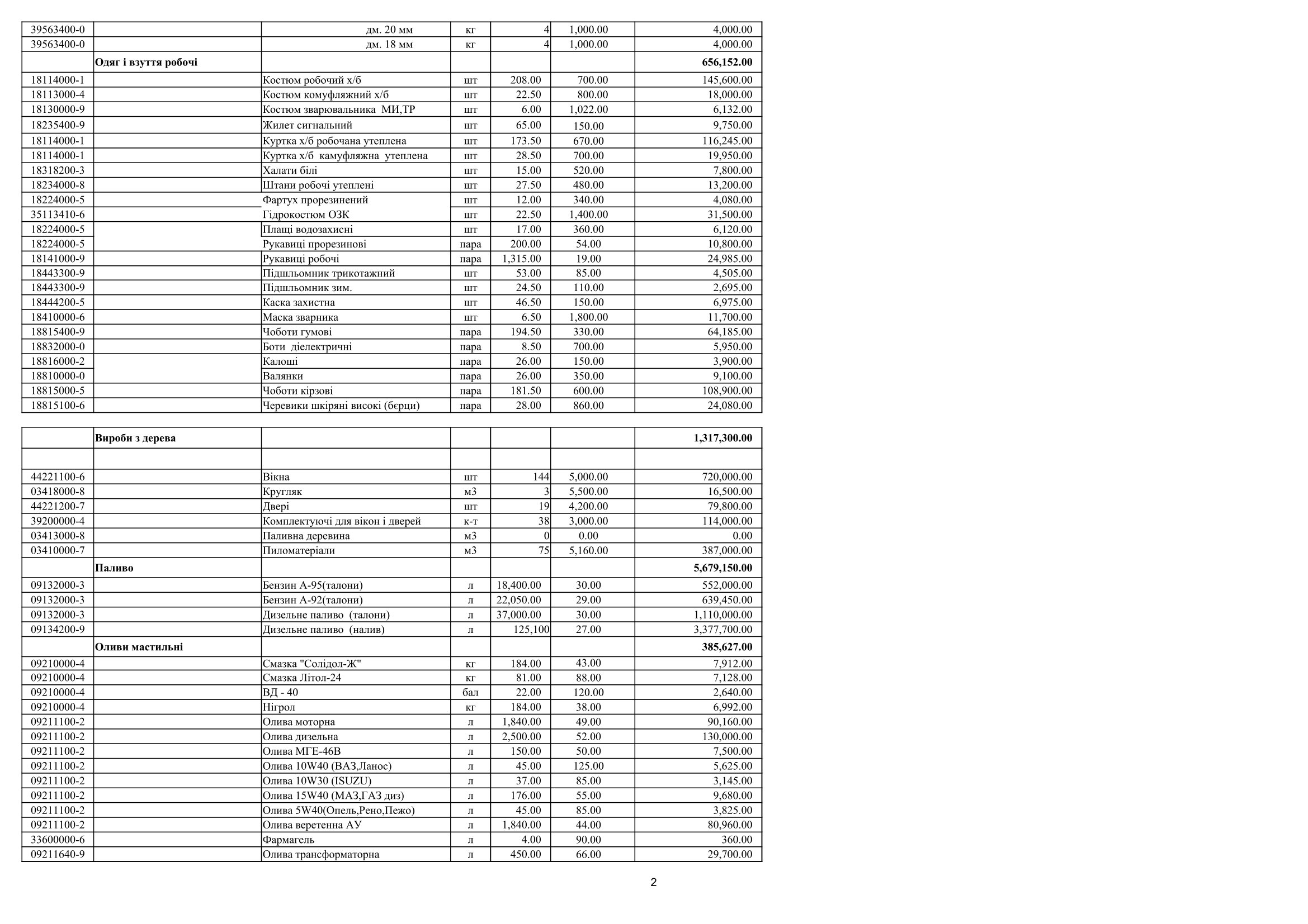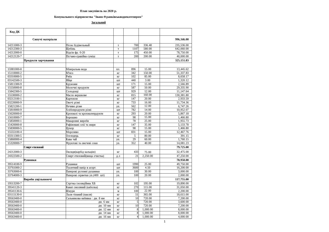 План закупівель на 2020 рік